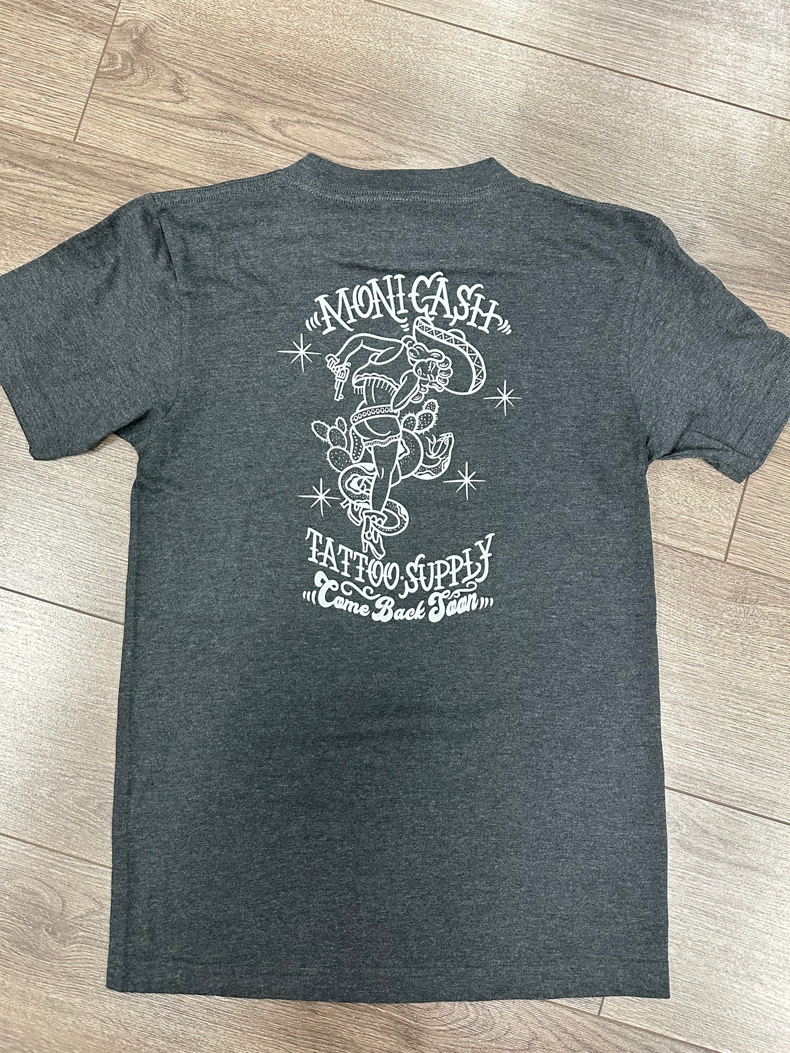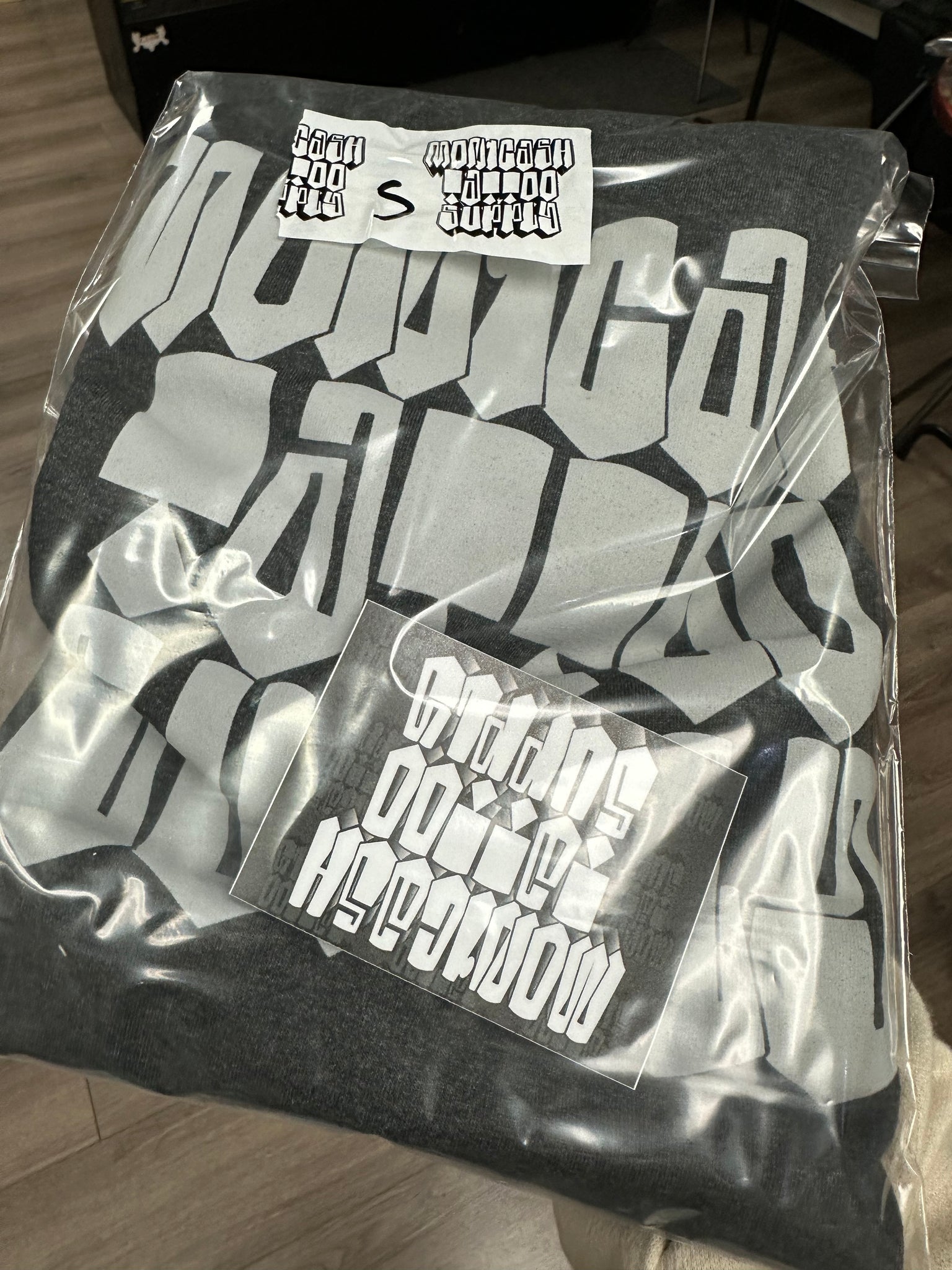 OG monicash logo in the front , come back soon NEW logo in the back .