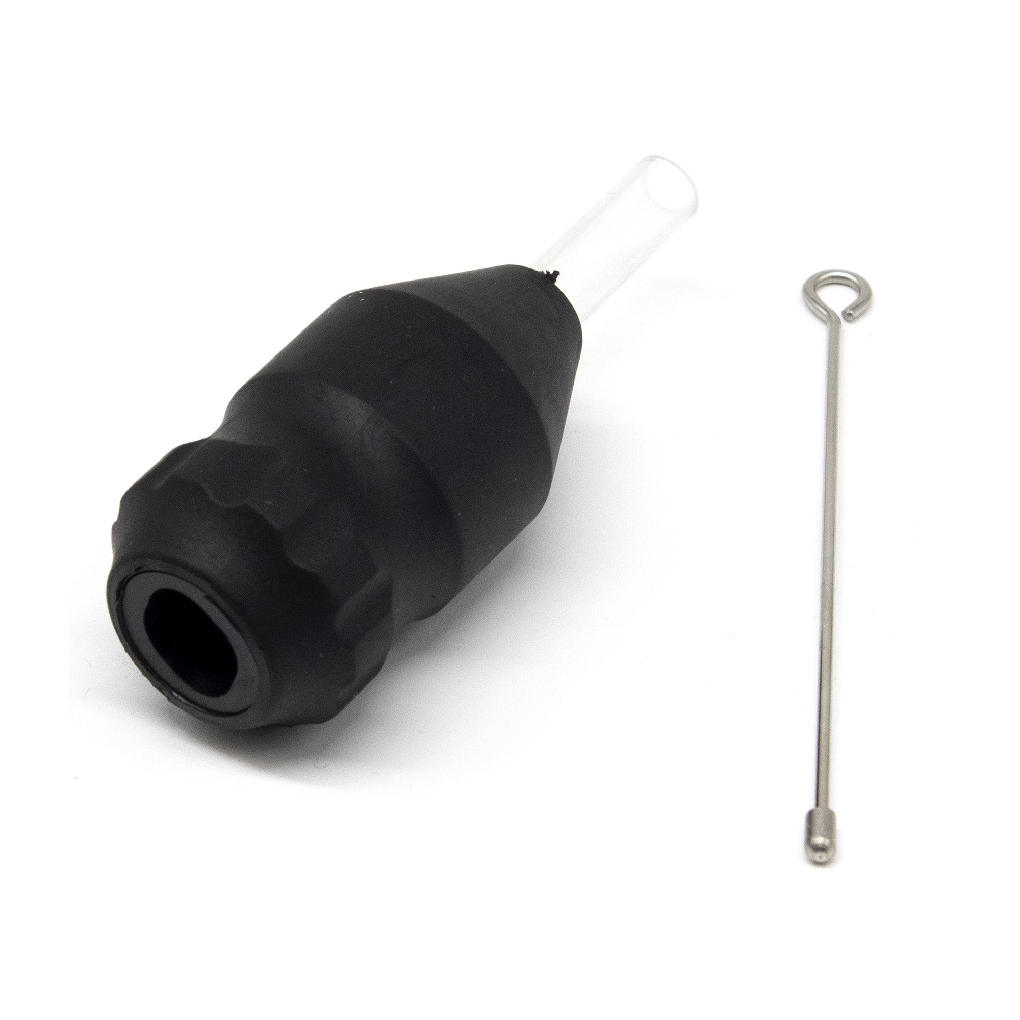 Black 1" disposable cartridge grips. Universal and compatible with all needle cartridges. Purchase singly or by the box. Each grip comes with its own plunger.